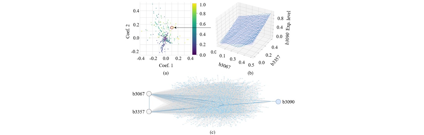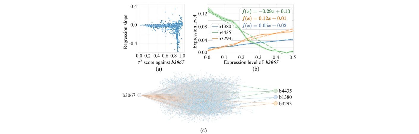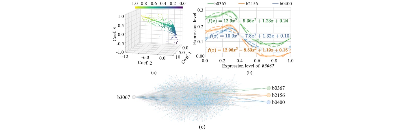 The inherent GRNN of E. coli can be viewed as a randomly structured neural network with approximately 5,000 nodes (genes) and over 10,000 regulatory edges, exhibiting diverse activation, inhibition, and combinatorial logic patterns. By identifying sub-networks that display computational potential, we extract regression- or classification-capable sub-GRNNs suited to specific tasks such as pattern recognition, signal transformation, or decision-making.